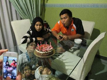 Sharing a Birthday cake.