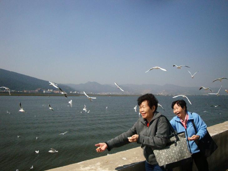 Happiness was seeing my mom and aunt enjoying themselves when they were in visiting their eldest brother (my first uncle). It was a great family time for mom and aunt visiting their old sibling who they have not met for decades. We took them around for a short tour and we stopped by this place to feed the sea gulls. Mom and aunt were so happy chasing and coaxing the to come grab the breads in their hands. You could tell from the picture they really did have a lot of fun. It was precious moment for me to see how the two sisters playing together just like how they were in their childhood.