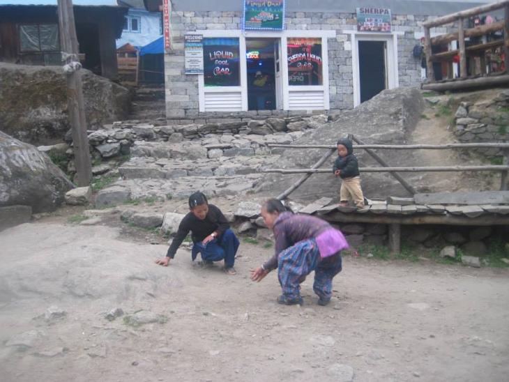 Happiness can be that basic. Two marbles. Two girls. And a young sibling as a spectator! (Spotted in Monjo, a Nepalese village along the Everest Base Camp Trek)