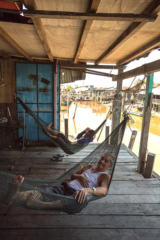 A fishing village where this uncle was taking a nap while waiting for the tide to rise to haul in the day catches. Many seek for happiness when the best moment is the present moment.