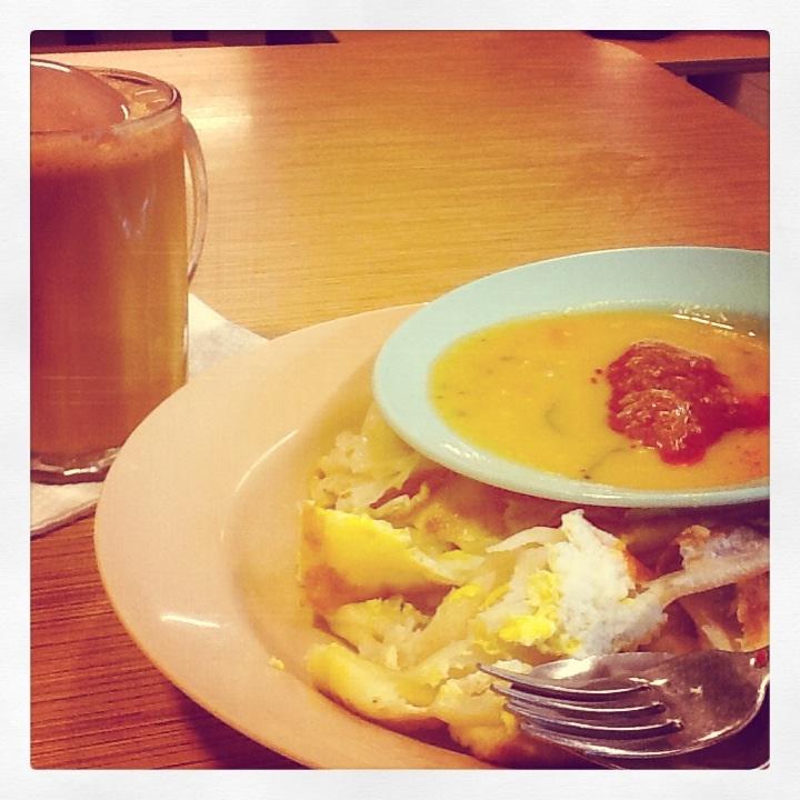 My mother used to alway say the secret to making a man happy was to always keep his tummy happy. This photo is my take on that. I flew home via Kuala Lumpur after working abroad just to have this breakfast in a little downstairs food court. It's still my favourite and still makes me happy!