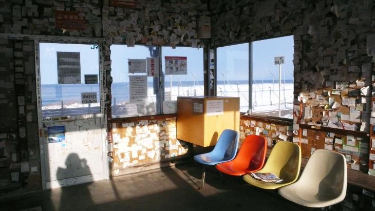 A station beside the Okhotsk Sea on a dreary winter day. Happiness here is a pocket of warmth from the icy winds. Travellers come here to find, and be found. With thousands of messages here, you are never alone in this no-man station.