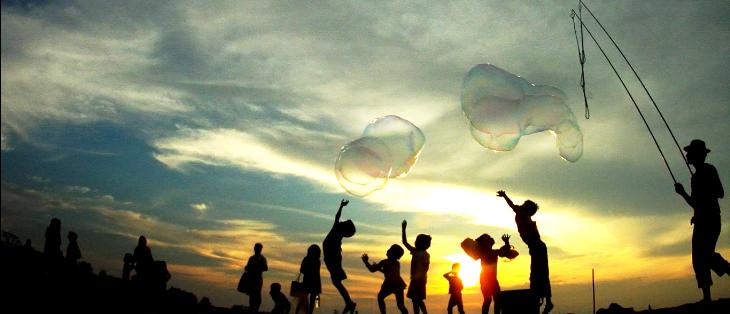 Sometimes I play giant bubbles at the beach and many kids will join in to pop the bubbles. For me, happiness is when these kids get to play under the gentle sunshine very far from worries.