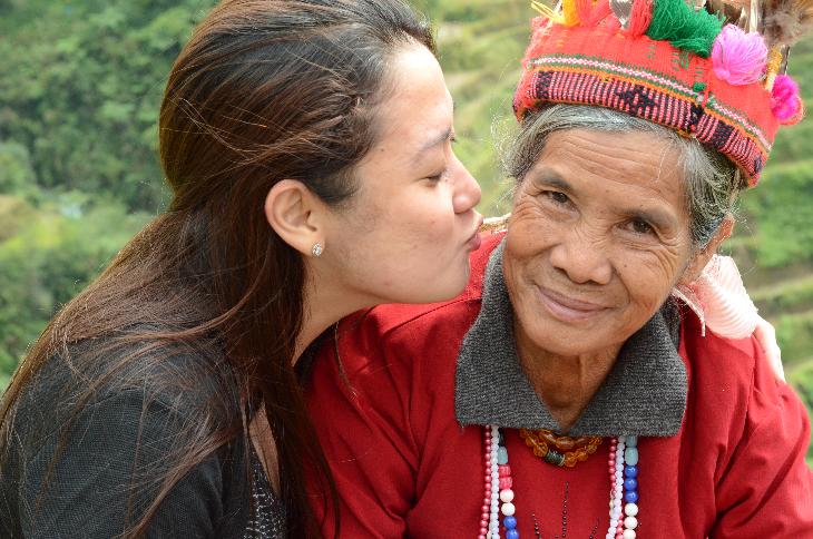 "The kiss that gives forever Happiness" as this old native woman told me after kissing her. I am a stranger in that place when happen to meet this old woman hiking in mountainous land of Ifugao Philippines with her harvests. To my delight seeing her, i ask a photograph with her and kiss her as thank you. Her cheeks blushed and smiled at me and hug me as we part ways.