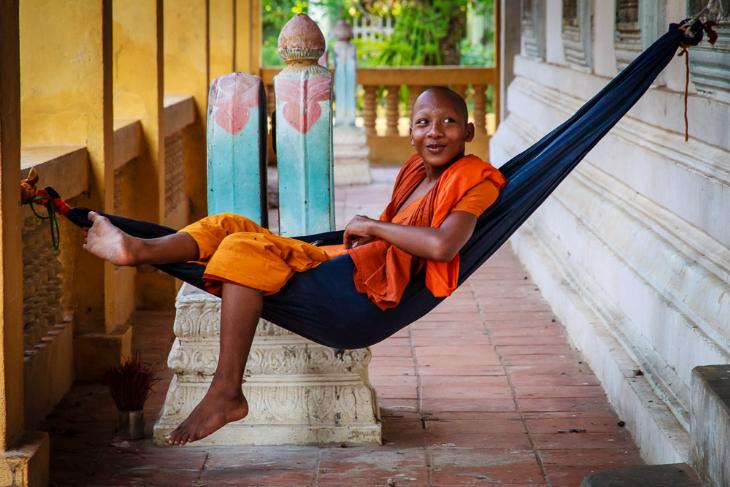 This young monk in Siem Reap, Cambodia starts the day with a smile on his face!