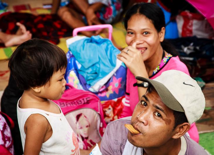 In spite of their situation, this family finds a brief happy moment as I take their photograph...