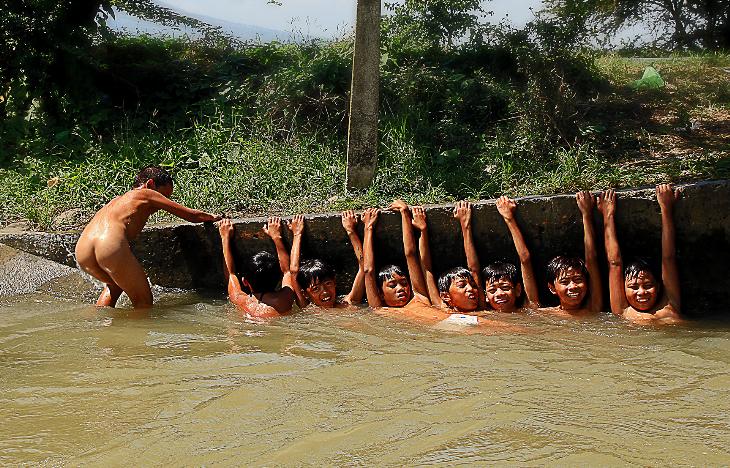 After Classes, These young boys goes for a swim to the running water of Irrigation near their school.Great Happiness build through friendship in a very simplest form.
