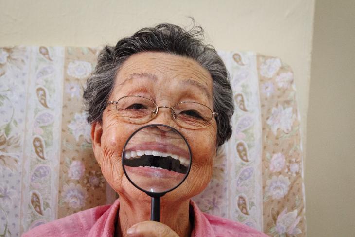 My grandma's teeth are almost all gone due to her age. We gave her a set of new dentures on her birthday. It makes her pretttier & brings her a BIG bright smile. :D