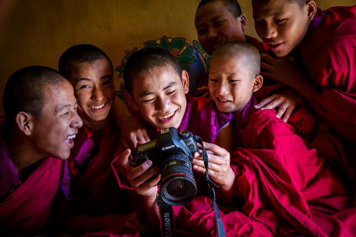 Photography & technology brings amusement to a group of monks