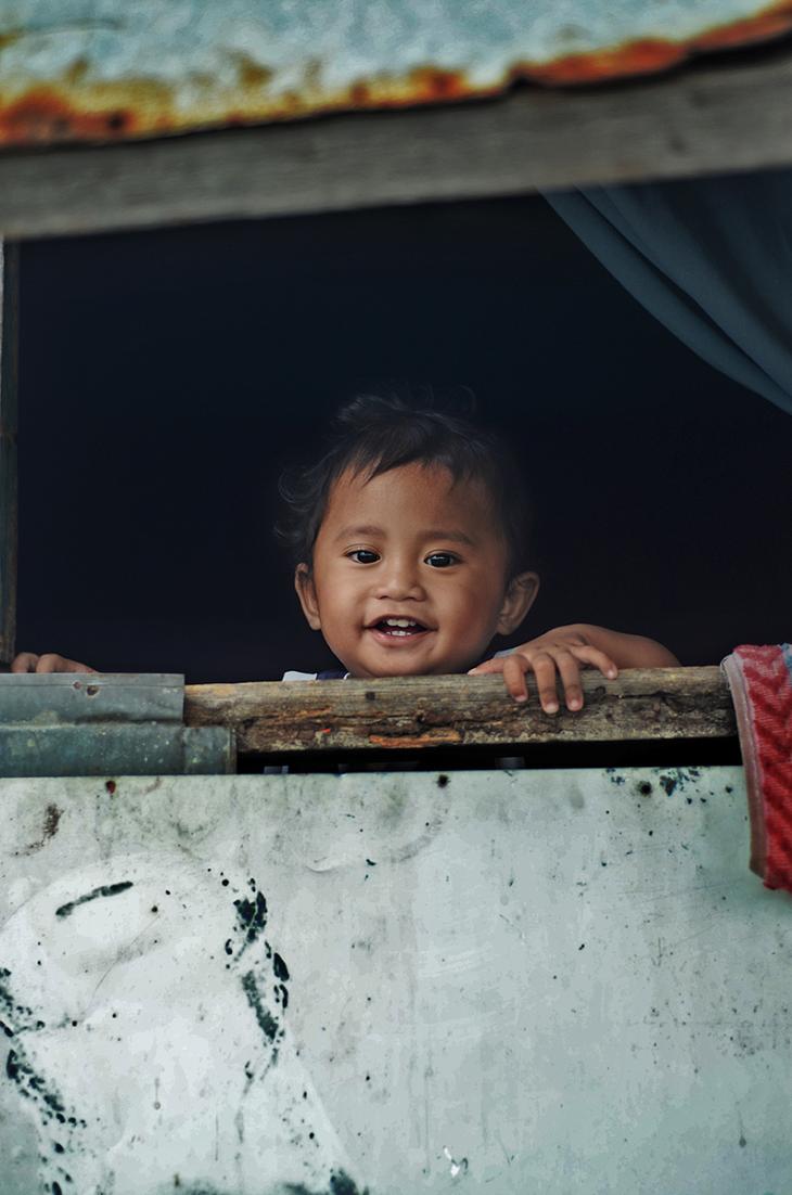This little boy's capture of his decisive moment was made in his home in one of the slum areas in Pampanga, Philippines. The moment the camera was aimed to him, he became gleeful and fully aware that he is being shot. The little boy is waiting for her mother who has gone in a day's work to supply their food along with his siblings who live in this small shanty.