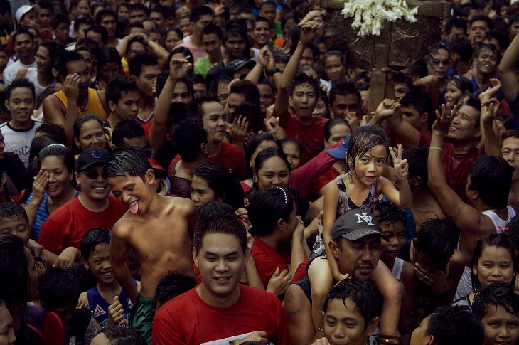 PEACE is happiness-as with what is obviously be seen on this photo. The little girl shows a sign of peace where a happy crowd celebrates at the background. On her parallel is also a kid in his happiest smile.