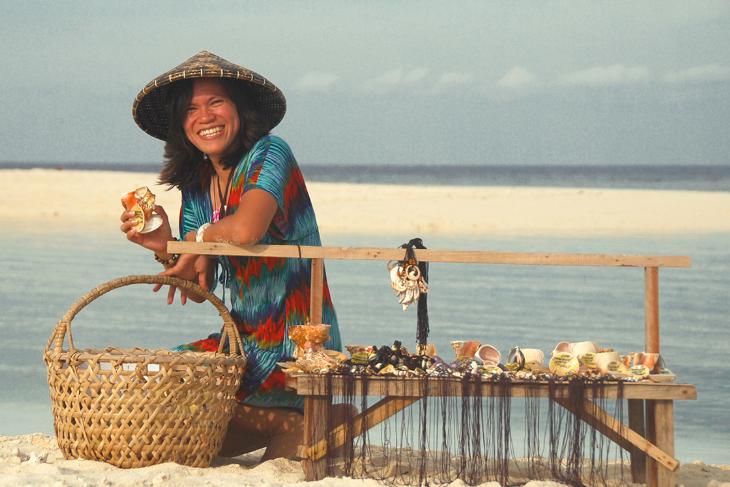 This tourist was delightfully surprised that she could shop for one-of-a-kind souvenirs right in the comfort of this sandbar.