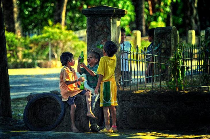 Bucolic Kids of Abra, enjoying the cold soda and crackers after a hot afternoon of playing in the park.