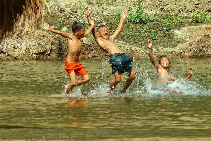 Filipinos are known to be jolly people. They even say that in the eyes of the kids, nothing is impossible. That eventhough they don't have much money and material things, happiness is just around the corner. Seeing playing kids laughing their hearts out is a nice scenerie and would even draw a smile oh the face of whoever sees them. These kids playing at the dam of wawa in Montalban, Rizal is an example of it.